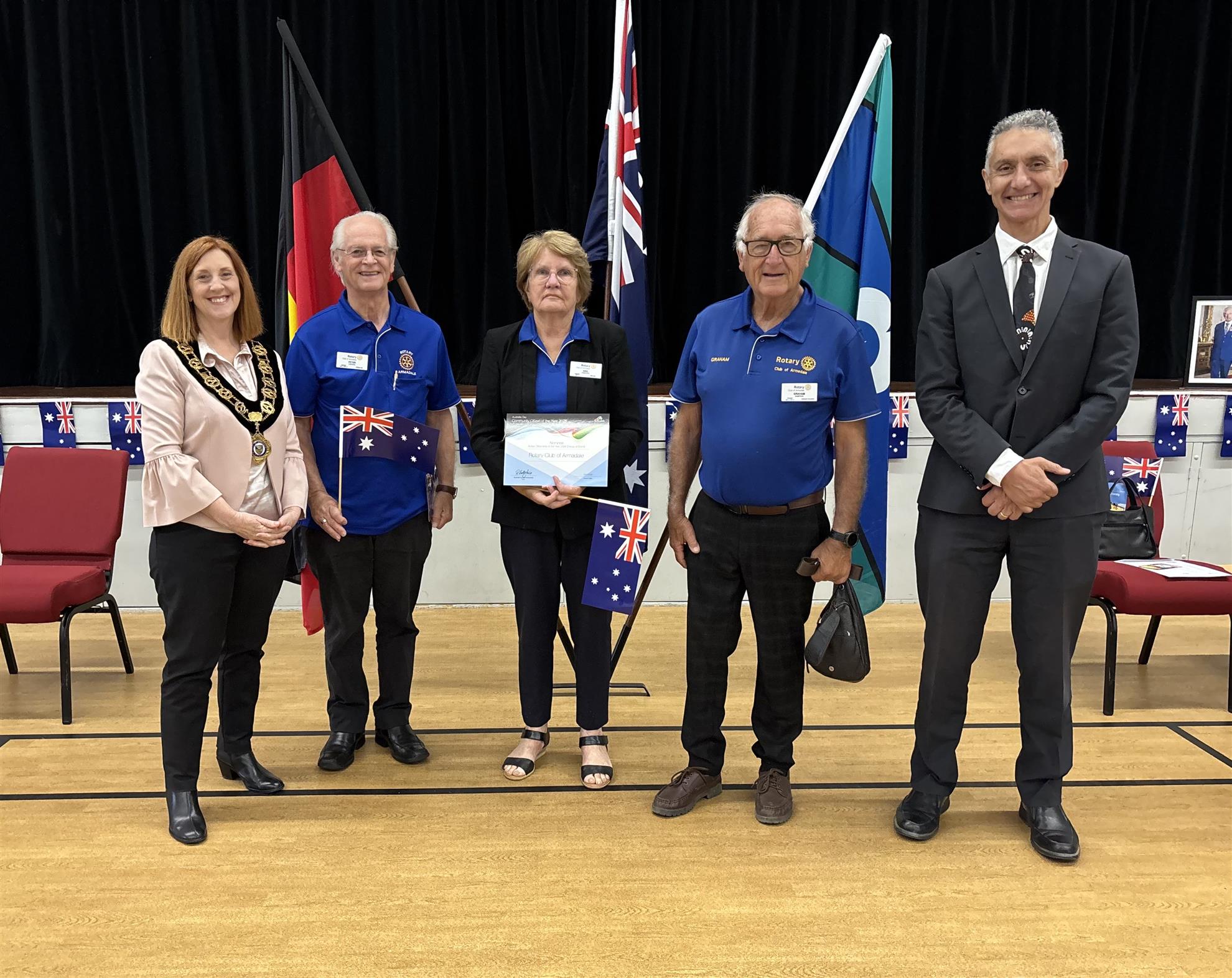 At City of Armadale's Citizenship Ceremony, the Rotary Club of Armadale was recognised with two nominations for community citizens of the year. Past President Anthony was nominated for Community Citizen of the Year and the club itself received a community group nomination.